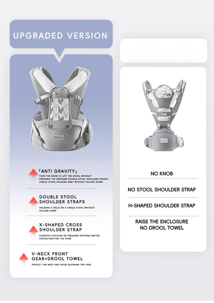 Réponse 2: Le design ergonomique avec des bretelles croisées et un siège qui répartit le poids aide à réduire la pression sur les épaules et la colonne vertébrale.